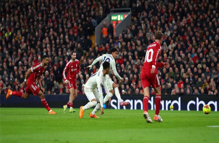 وكاد ليفربول أن يسجل هدفه الأول في الدقيقة التاسعة من عمر الشوط الأول، بعد تمريرة من كودي جاكبو، وصلت إلى ماك أليستر، الذي سددها برأسه، ولكن إليوت أندرسون لاعب الخصم نجح في التصدي لها من أمام خط المرمى.
