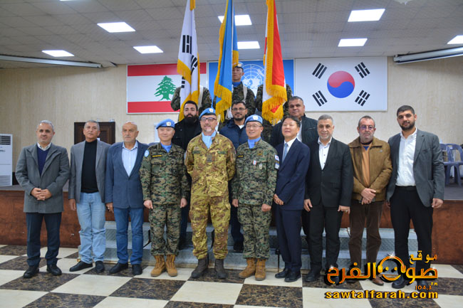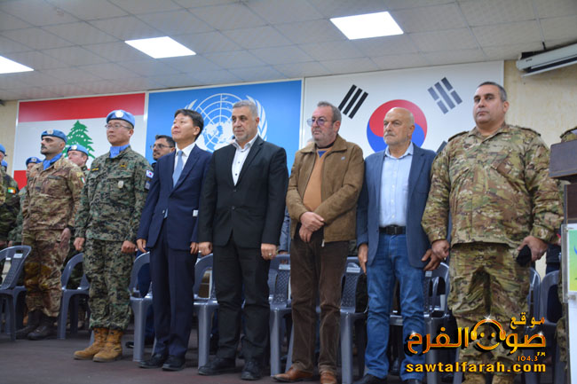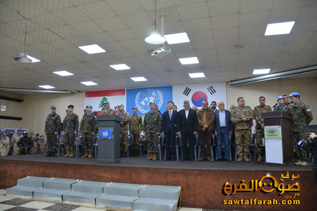 أقامت الوحدة الكورية العاملة في قوة الامم المتحدة الموقتة “اليونيفيل” في لبنان، احتفال تسليم وتسلم في القيادة الكورية بين الكولونيل هو جون لي وخلفه الكولونيل تاي جيونغ شا ، وكتيبته العسكرية الجديدة 31 ، وذلك في مقر الوحدة في منطقة طيردبا – صور، في حضور السفير الكوري لدى لبنان جون كيو سوك ، مسؤول اقليم جبل عامل في حركة أمل علي إسماعيل ، قائمقام صور محمد جفال، قائد القطاع الغربي لليونيفيل الجنرال دايفيد كولوسي ، قائد الكتيبة الماليزية الكولونيل حاجي محمد ريزوان بن عبد الله ، رئيس بلدية صور حسن دبوق ونائبه علوان شرف الدين ، ممثل قيادة قطاع جنوب الليطاني العميد سهيل وزني ، رئيس مكتب مخابرات صور العقيد محمد حازر، رؤساء بلديات العباسية وبرج الشمالي وبرج رحال والبرغلية وفاعليات رسمية وبلدية وعسكرية ومدعوين.