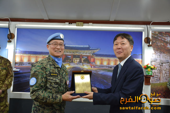 كما قدم العميد سهيل وزنة للكولونيل الكوري المغادر لي ، وسام قيادة قطاع جنوب الليطاني في الجيش نيابة عن قائد القطاع العميد الركن نيكولا تابت تقديرا لدوه في عملية السلام في جنوب لبنان.
