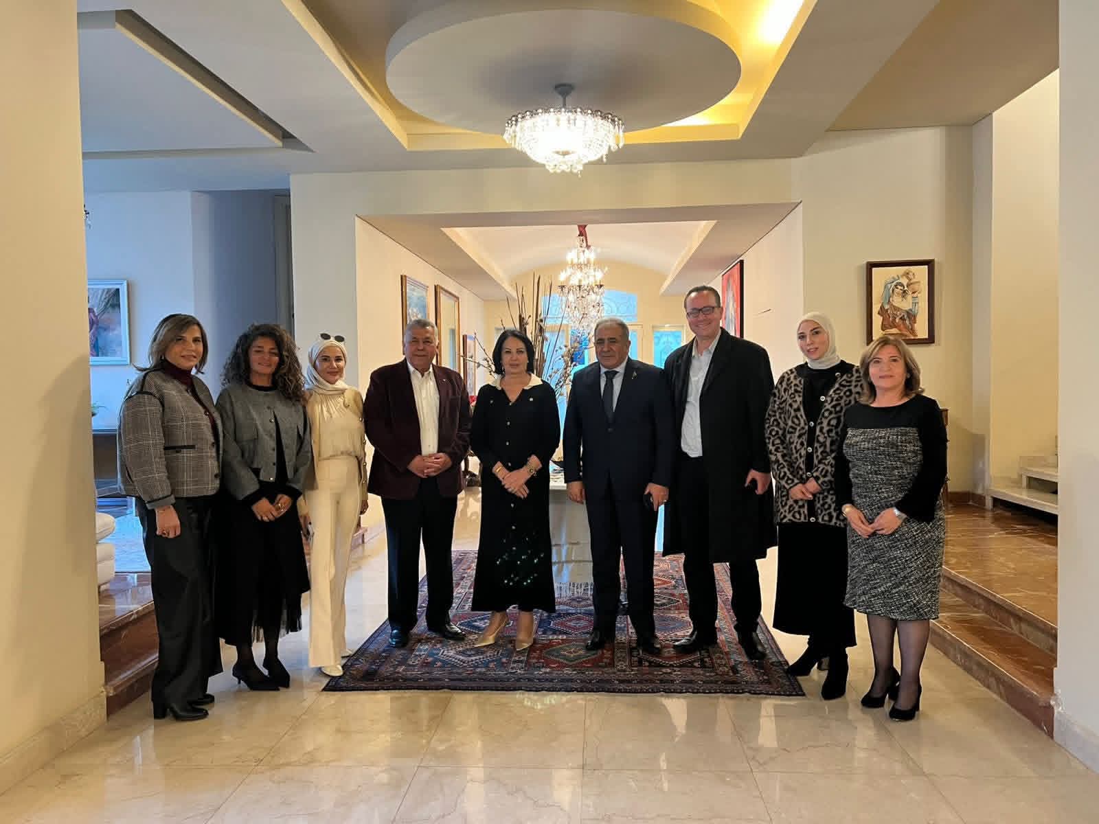 بدوره اثنى السفير الأسعد على عمل المركز برئاسة السيدة نجلاء سعد والسيدات الاعضاء وقدم لهن هدايا رمزية من فلسطين .