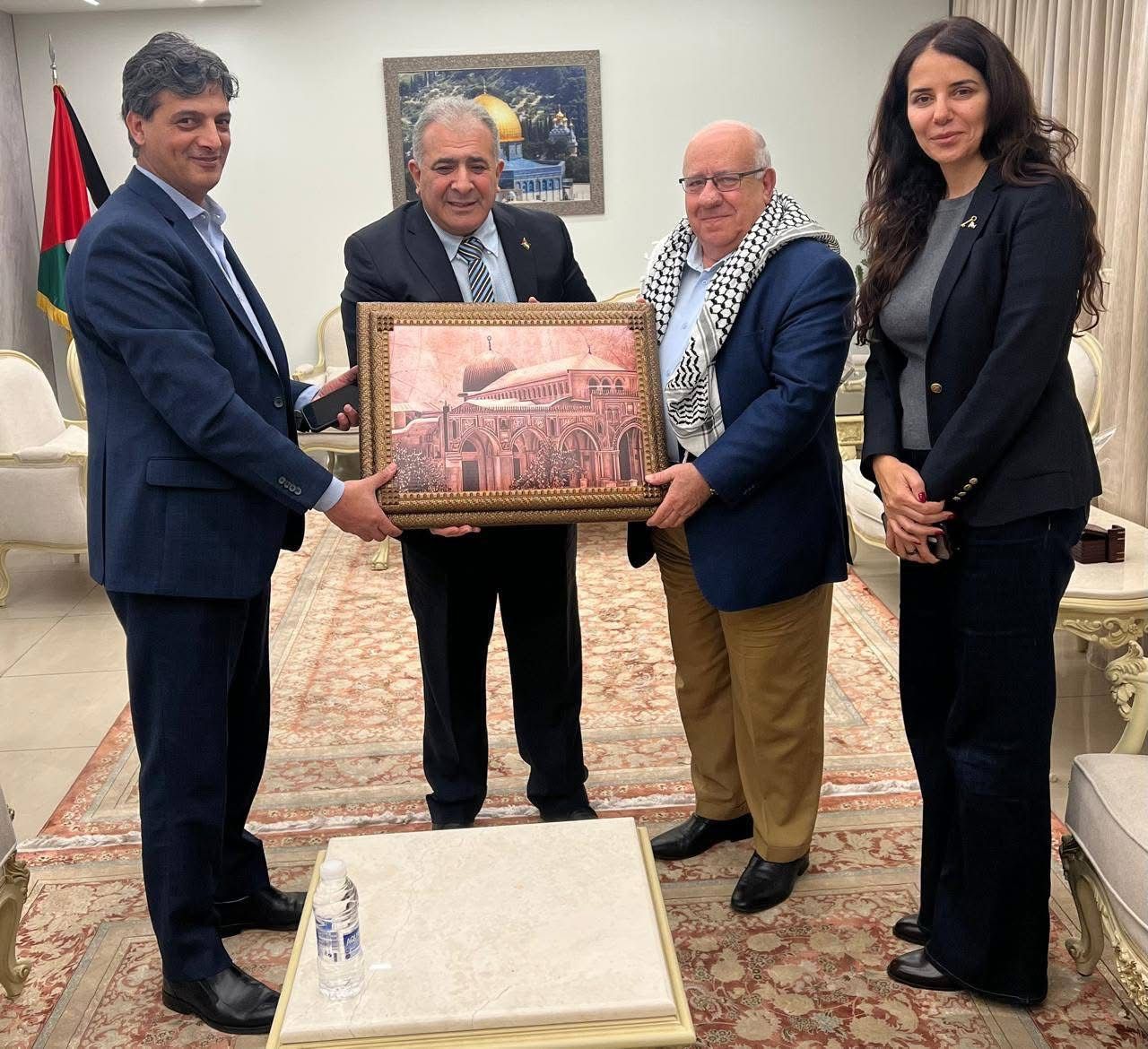 بدوره قدم السفير الاسعد ميدالية الرئيس محمود عباس والكوفية الفلسطينية ومجسماً للمسجد الاقصى للباحث ابو فخر تقديراً لدوره في توثيق الرواية الفلسطينية ولبحوثه في التاريخ الفلسطيني وفي دراسات الهوية.