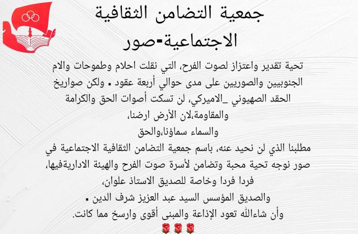 محليات جمعية التضامن الثقافية الاجتماعية في صور تدين الاعتداء على إذاعة صوت الفرح By F.S مارس 8, 2026 لا توجد تعليقات التضامن