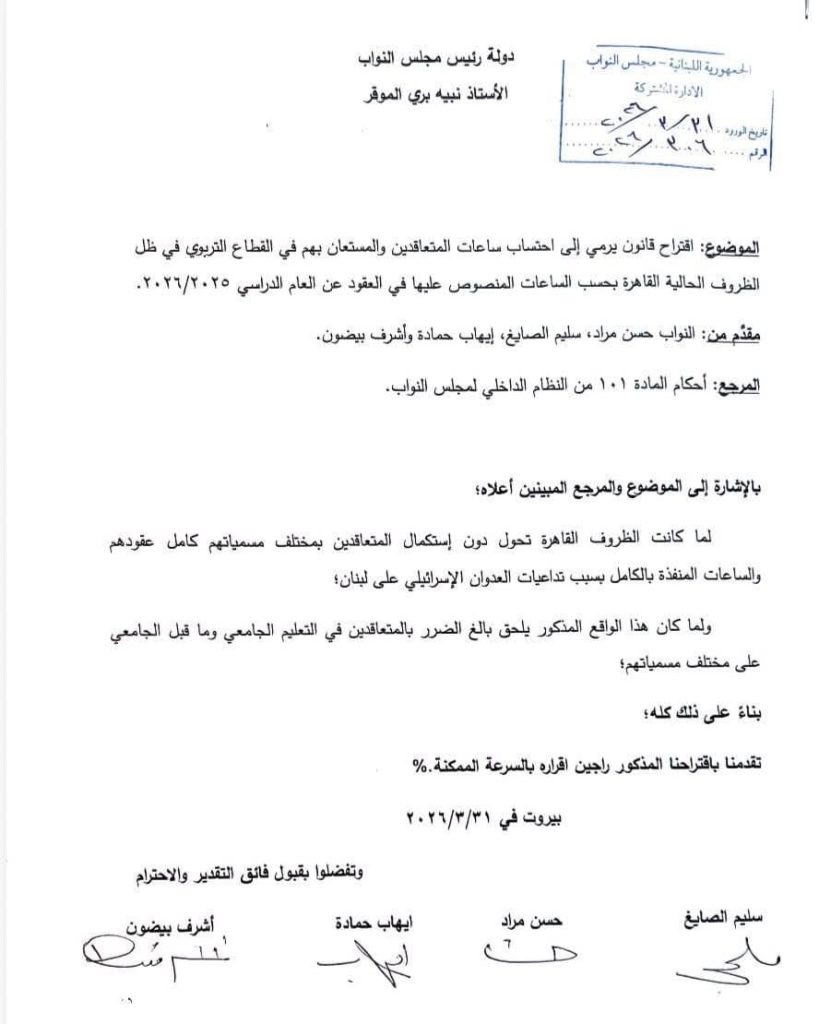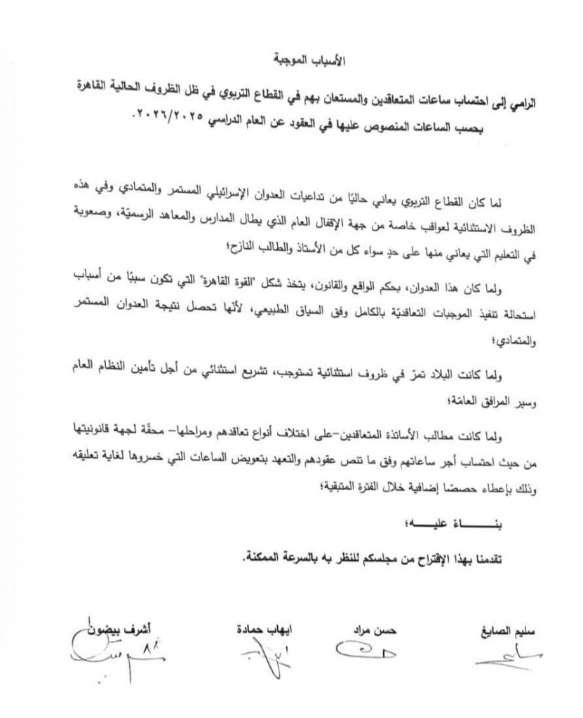 باسم لجنة الأساتذة المتعاقدين في التعليم الأساسي، نرفع إليكم أسمى آيات الشكر وعظيم التقدير، ليس فقط على مبادرتكم الكريمة، بل على بصيرتكم الوطنية وشجاعتكم في تحمل المسؤولية في هذه المرحلة التاريخية الحرجة التي يمر بها بلدنا العزيز جراء الحرب.