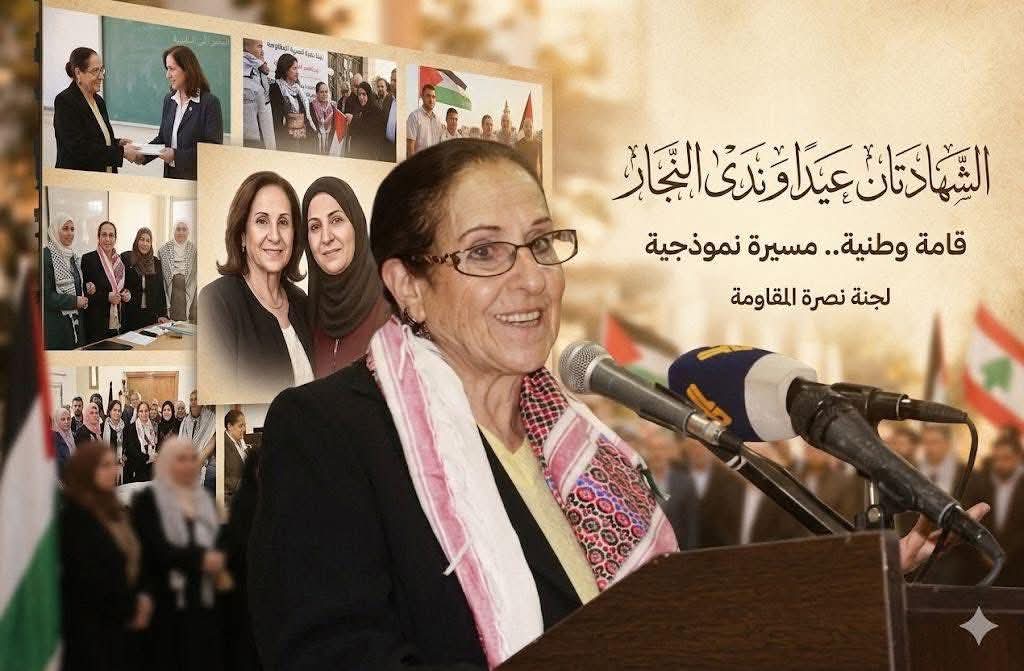 أنتما، يا ندى وعايدة، ايتها الصديقتان اللتان تشرفت وكبرت بصداقتهما، كيف يمكن لنا ان ننساكما، او ننسى الإنجازات التي تحققت بفعل النشاط الكبير والمجهود الجبار الذي قمتما به. وكيف ننسى انكما من مؤسسي هيئة دعم المقاومة في الجبل، حاملةً لواء الصدق والنخوة في زمن تخلّى فيه كثيرون. كنتما هناك حيث الخطر، في كل مكان، تقدم العون والدعم للبسطاء والشرفاء.