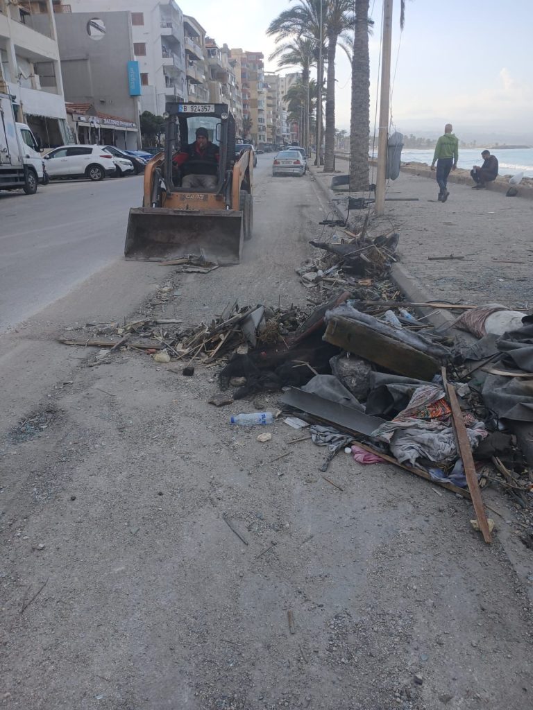 وتعمل الفرق منذ ساعات الصباح بإشراف رئيس العمال حسين عز الدين على رفع الأنقاض وتنظيف الشوارع وإزالة العوائق، من أجل تسهيل حركة المواطنين.