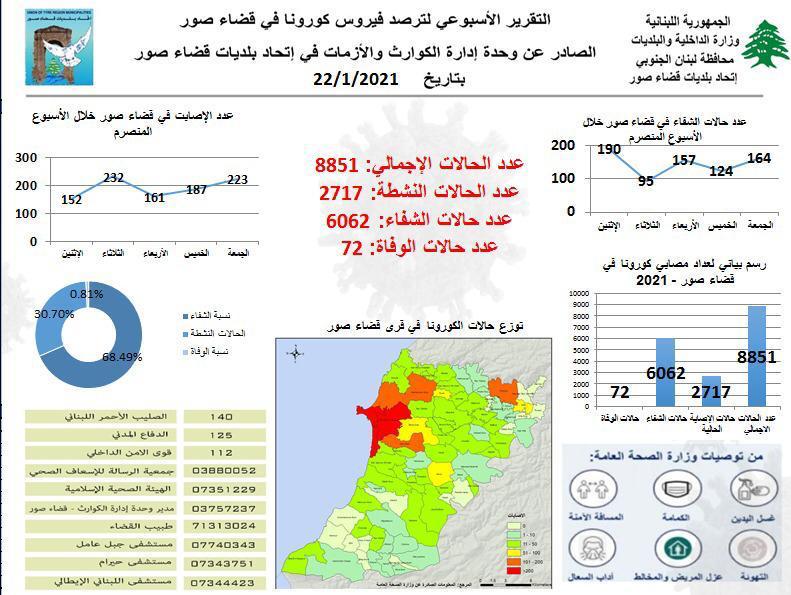 وحدة إدارة الكوارث في اتحاد بلديات قضاء صور تفيد وبناء لتقرير رئيس طبابة القضاء الدكتور وسام غزال