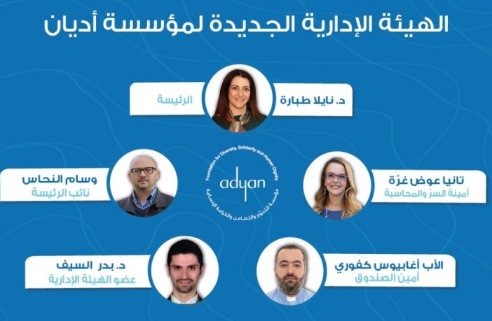 عقدت الهيئة العامة لمؤسسة أديان اجتماعًا بتاريخ ١٩ كانون الثاني ٢٠٢١، حضره إلكترونيًا -بسبب تبعات جائحة كورونا- ١٥ من أصل ٢٠ عضوًا يشكلون مجموع الهيئة العامة، جرى خلاله انتخاب الهيئة الإدارية الجديدة للمؤسسة التي أصبحت على الشكل الآتي: