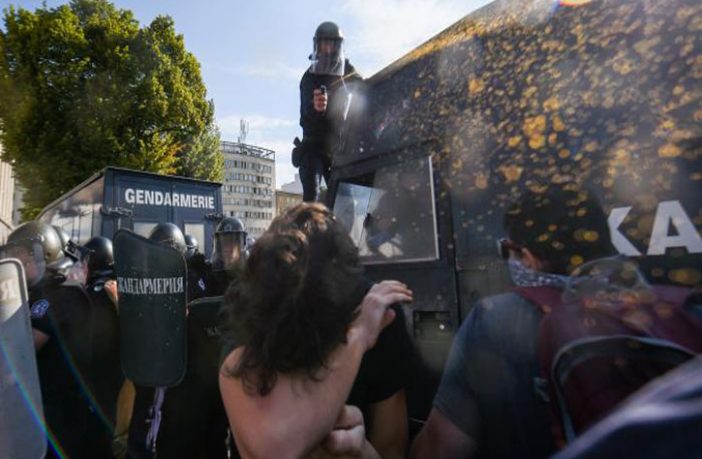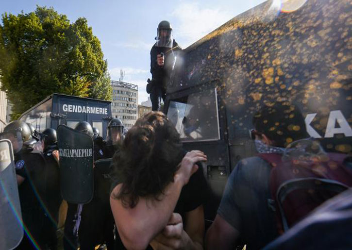 وحسب البيانات، رفض المحتفلون تنفيذ أوامر الشرطة، ما دفع الشرطة إلى رشهم برذاذ الفلفل.