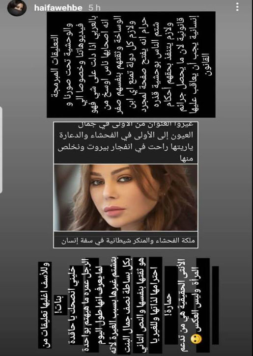 ونشرت هيفاء في خاصية القصص المصوّرة (ستوري) الملحقة بحسابها الرسمي على تطبيق “انستغرام”، تمني المتابعة لو أنّ هيفا وهبي ماتت في الإنفجار الذي هزّ العاصمة اللبنانية بيروت في الرابع من آب (اغسطس) من عام 2020 المنصرم.