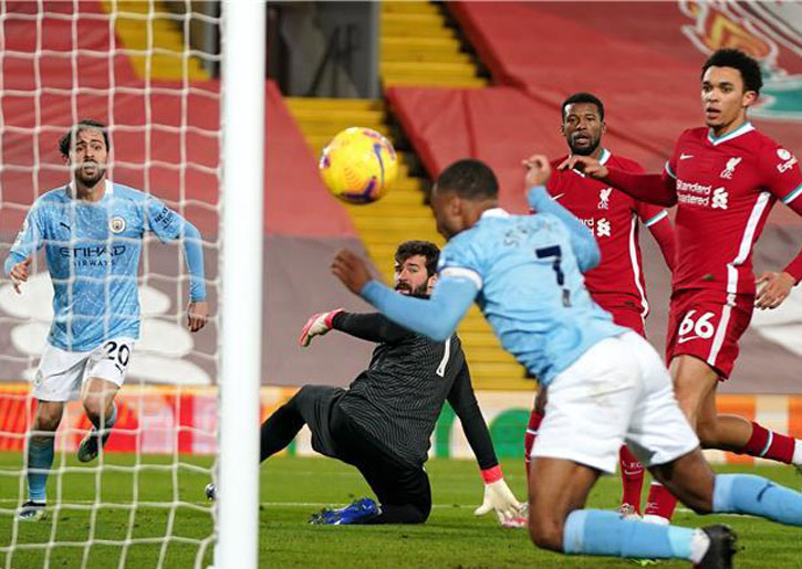 وعاد أليسون ليرتكب خطأ جديدا بالطريقة ذاتها، فأهدى الكرة إلى برناردو سيلفا الذي رفعها أمام المرمى إلى سترلينج الذي وضعها برأسه في الشباك الخالية بالدقيقة 76.