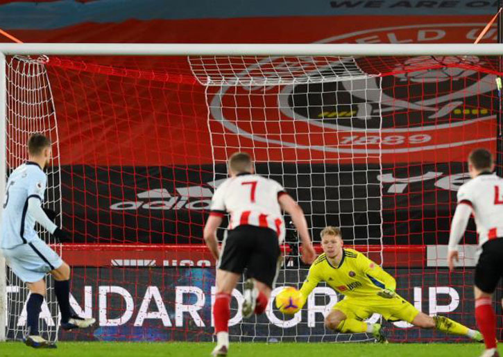 واحتسب الحكم ركلة جزاء لشيفيلد يونايتد في الدقيقة 12، قبل أن يتراجع عن قراره بعد الاستعانة بتقنية الفيديو لوجود تسلل على باشام قبل تعرضه للإعثار.