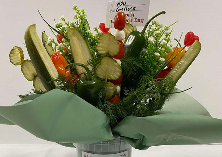 هذا العام ابتكرت المطاعم “بوكيه المخلل” كهدية مناسبة للعشاق خلال عيد الحب، إذ توضع قطع متنوعة من المخللات داخل أسياخ خشبية بطريقة منمقة، وحولها حشو زهور اصطناعية وورق مناديل زهرية، ثم تلف بطريقة باقة الورد وتقدم للشريك.