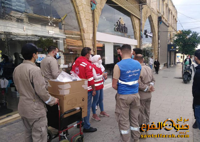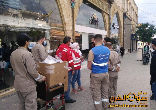 نفّذت وحدة ادارة الكوارث في اتحاد بلديات قضاء صور عبر فرقة المستجيب الاول في مدينة صور وجمعية الرساله للاسعاف الصحي – الدفاع المدني -في مدينة صور. بالتعاون الصليب الاحمر اللبناني قسم ادارة الكوارث.، حملة توعية وتوجيه وارشادات هذا اليوم للاهالي في السوق القديم وسوق الخضار ضمن المدينة وتم اعطاء التعليمات والتوجيهات اللازمة للاهالي اصحاب المحال والزبائن وتم توزيع الكمامات ومعقم لليدين وملصقات توعوية وارشادية للجميع خلال الحملة .