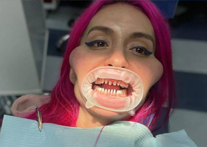 ويبدو أن عمليات التعديل في وجه أناستازيا بوكريشوك، لم تتوقف عند حقن خديها، إذ اتضح أن أسنانها البيضاء مركبة، وتخفي تحتها أسنانها الحقيقية المتفرقة وغير المتساوية.