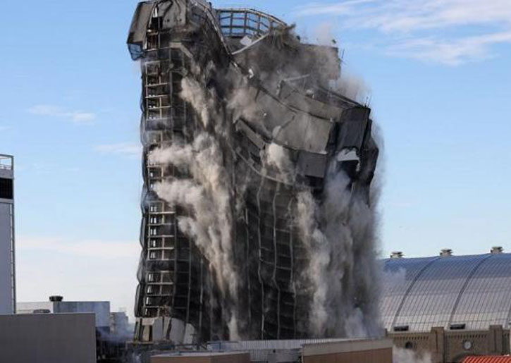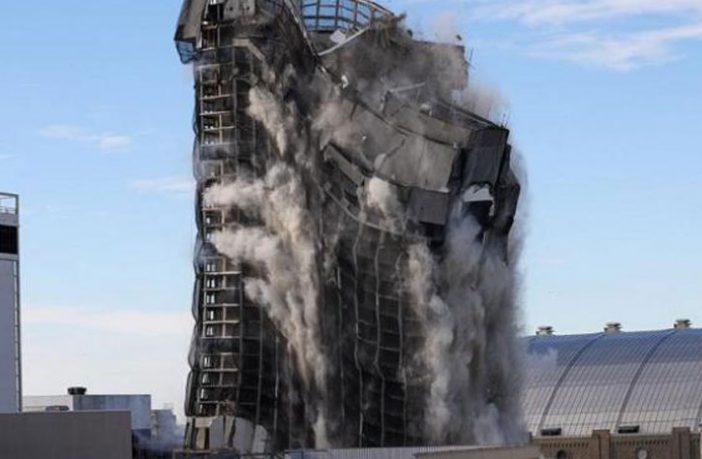 هدم يوم الأربعاء مبنى فندق وكازينو “ترامب بلازا” السابق الذي بناه الرئيس الأمريكي السابق دونالد ترامب في أتلانتيك سيتي.