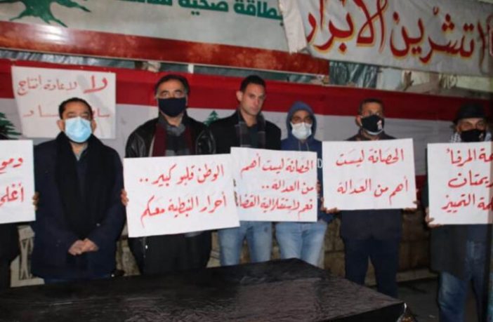 وتحدث الناشط أسد غندور باسم المحتجين فدعا “القضاة الوطنيين المستقلين الذين يؤمنون بدولة القانون والمواطنة إلى التضامن في ما بينهم وتشكيل هيئة قضائية، وإصدار وثائق دستورية وإعلان تحالفهم مع الشعب اللبناني لمواجهة هذه المنظومة الفاسدة”.