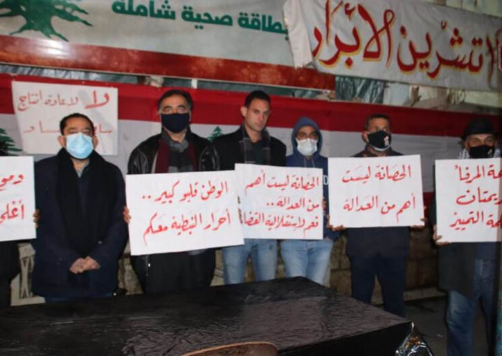 نفذ “حراك النبطية” وقفة تضامنية مع أهالي شهداء انفجار مرفأ بيروت، أمام خيمه قرب السرايا الحكومية في مدينة النبطية، رفضا لـ”المماطلة في تحقيق العدالة” وتلبية لـ”نداء أهالي الضحايا بالوقوف بجانبهم”.