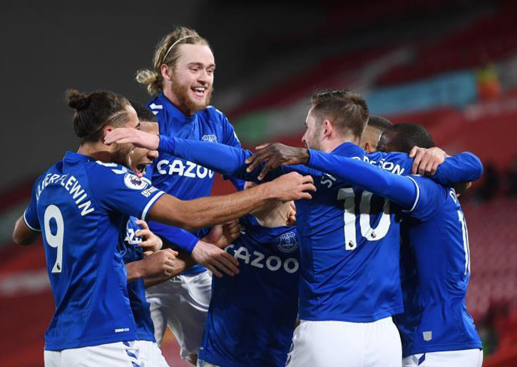 في الناحية المقابلة، لجأ مدرب إيفرتون كارلو أنشيلوتي لطريقة اللعب 5-3-2، حيث تكون الخط الخلفي من شيموس كولمان ومايسون هولجايت ومايكل كين وبن جودفري ولوكاس ديني، وأدى توم ديفيس دور لاعب الارتكاز، خلف المهاجم المتأخر، وشغل البرازيلي ريتشارليسون دور المهاجم الصريح.