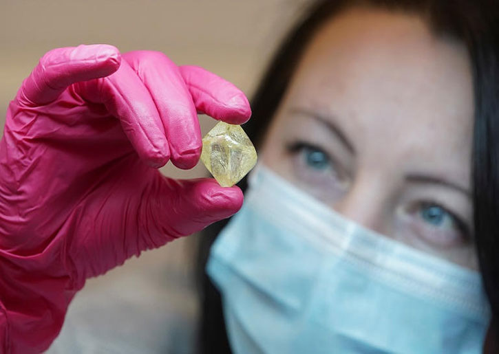 والماسة الشفافة في حجم بيضة صغيرة. وتتنافس ألروسا، وهي أكبر منتج للألماس الخام في العالم، مع وحدة دي بيرز في شركة أنجلو-أمريكان.