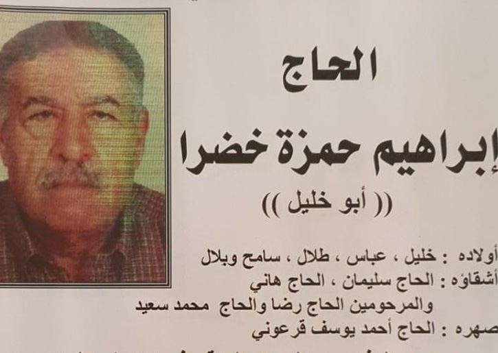 وفاة الحاج ابراهيم حمزة خضرا (أبو خليل)