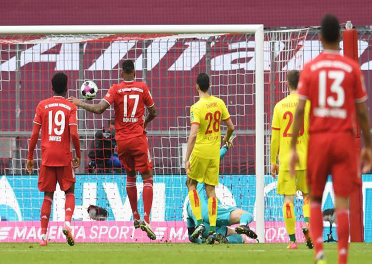 وارتقى ليفاندوفسكي لعرضية سولي من الجهة اليمنى، ليقابلها المهاجم البولندي بضربة رأسية قوية، لكنها حادت عن مرمى الضيوف.
