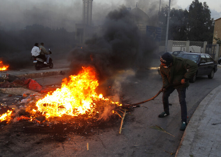 توازياً، قطع محتجون الطريق في ساحة الشهداء عند مسجد محمد الأمين وسط بيروت بالإطارات المشتعلة والحجارة، احتجاجاً على تردّي الاوضاع المعيشية وانهيار الليرة.