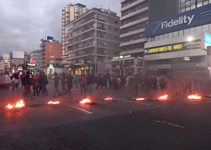 وفي بيروت، قطع الطريق في ساحة رياض الصلح من قبل بعض المحتجين.
