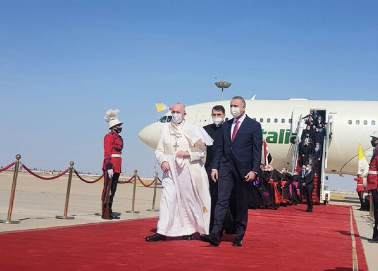 حطت طائرة البابا فرنسيس في مطار بغداد في بداية زيارة تاريخية هي الأولى لحبر أعظم للعراق، حاملا رسالة تضامن إلى إحدى أكثر المجموعات المسيحية تجذرا في التاريخ في المنطقة والتي عانت لعقود ظلما واضطهادات، وساعيا الى تعزيز تواصله مع المسلمين.