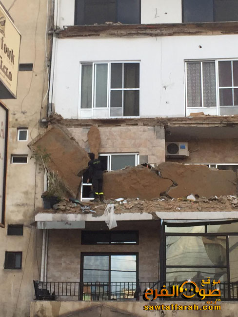شهد عقار قديم في الحوش قرب مطعم الزهراء انهيار شرفتين في طوابقه دون وقوع أي إصابات بشرية فيما اقتصرت الأضرار على الماديات.