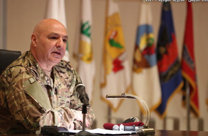 على صعيد آخر، عقد قائد الجيش العماد جوزف عون في اليرزة اجتماعاً مع أركان القيادة وقادة الوحدات الكبرى والأفواج المستقلة في حضور أعضاء المجلس العسكري، وتحدث عمّا يعانيه البلد نتيجة تدهور الوضع الاقتصادي، مشيراً إلى “أن الجيش هو جزء من هذا الشعب ويعاني مثله”. وقال: “إن الوضع السياسي المأزوم انعكس على كل الصعد، بالأخص اقتصادياً، ما أدى إلى ارتفاع معدلات الفقر والجوع”. واذ شدد على “أن الجيش لن يسمح بالمس بالاستقرار والسلم الأهلي”، قال: “العسكريون يعانون ويجوعون مثل الشعب”، متوجهاً إلى المسؤولين بالسؤال: “إلى أين نحن ذاهبون، ماذا تنوون أن تفعلوا؟ أتريدون جيشاً أم لا؟ أتريدون مؤسسة قوية صامدة أم لا؟. المطلوب من الجيش مهمات كثيرة وهو جاهز دائماً، لكن ذلك لا يمكن أن يقابَل بخفض مستمر ومتكرر للموازنة وبنقاشات حول حقوق العسكريين”. وأضاف: “تحدثنا مع المعنيين لأنّ الأمر يؤثر على معنويات العسكريين ولكننا لم نصل إلى نتيجة للأسف”. وقال: “لا يهمهم الجيش أو معاناة عسكرييه”.