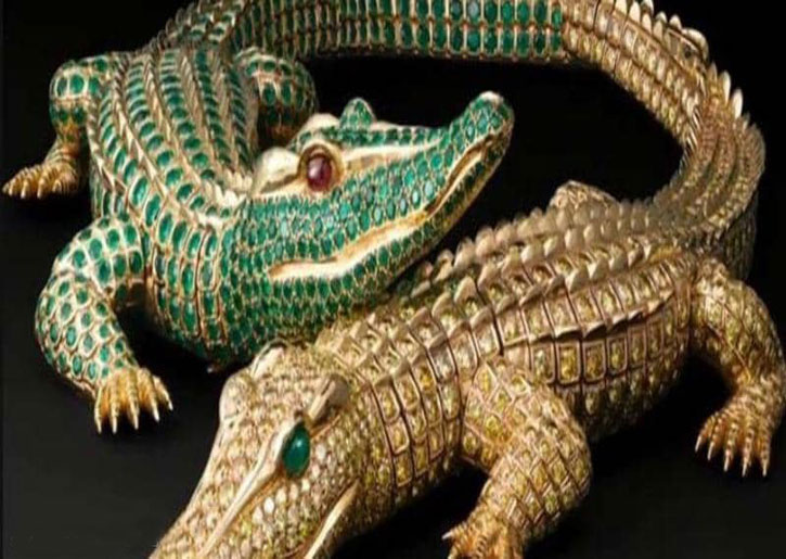 وقامت دار كارتييه للمجوهرات عام 1975 بتصميم عقد على هيئة التمساحين، واستغرق تصميمه مدة شهرين، ليصبح من أندر المجوهرات على مستوى العالم.