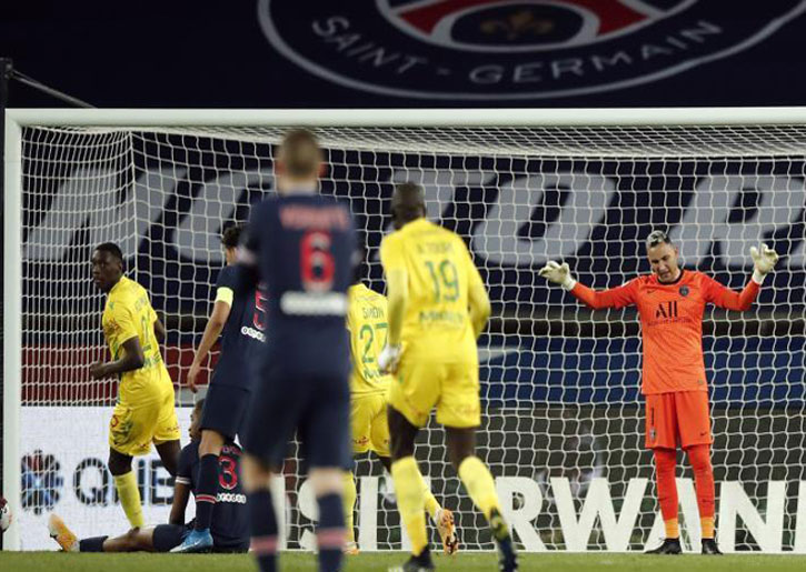سقط باريس سان جيرمان أمام ضيفه نانت بالخسارة بهدفين لهدف، على ملعب حديقة الأمراء، الأحد، ضمن منافسات الجولة 29 من الدوري الفرنسي.
