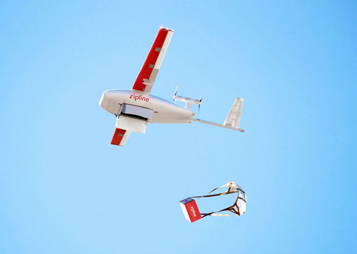 وبدأت Zipline عملياتها بنقل الدم والأدوية في رواندا في عام 2016، ووسعت الشركة منذ ذلك الحين عملياتها لتشمل غانا في عام 2019.