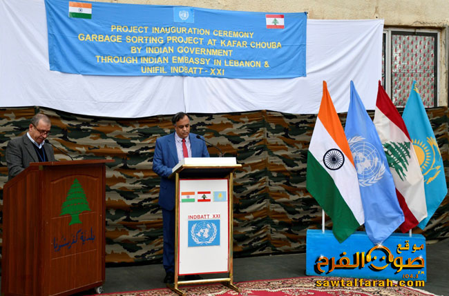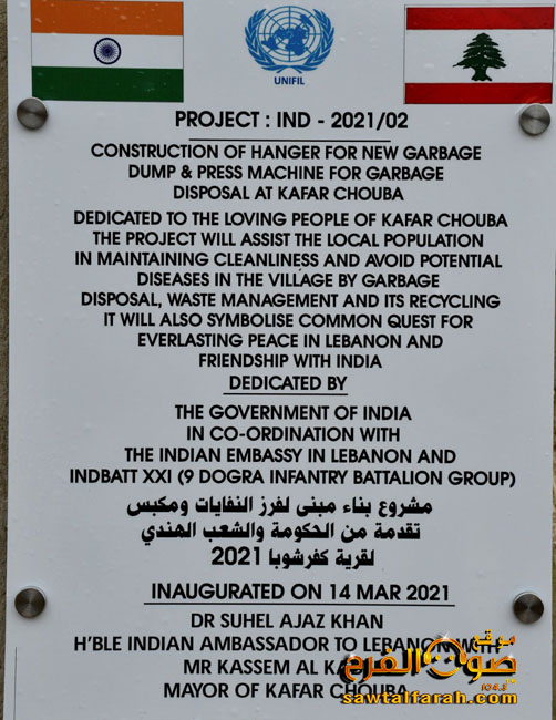 كرّس سعادة السفير الدكتور سهيل أجاز خان مشروعًا ممولًا من الحكومة الهندية لأهالي بلدة كفر شوبا في منطقة عمليات الكتيبة الهندية في اليونيفيل في جنوب لبنان في 14 آذار 2021.