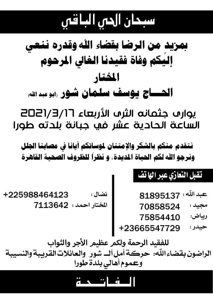 وفاة الحاج يوسف شور ( ابو عبد الله)