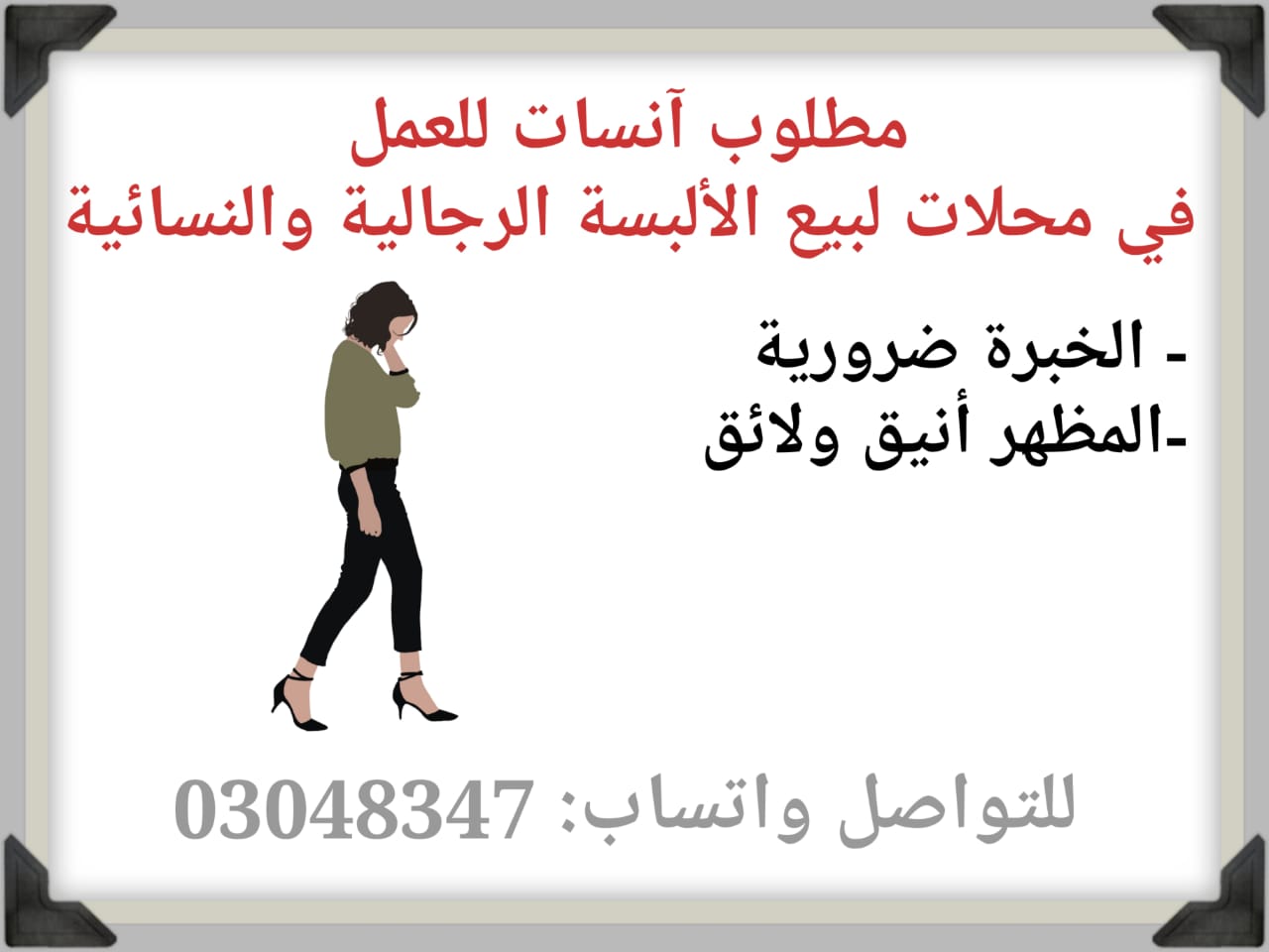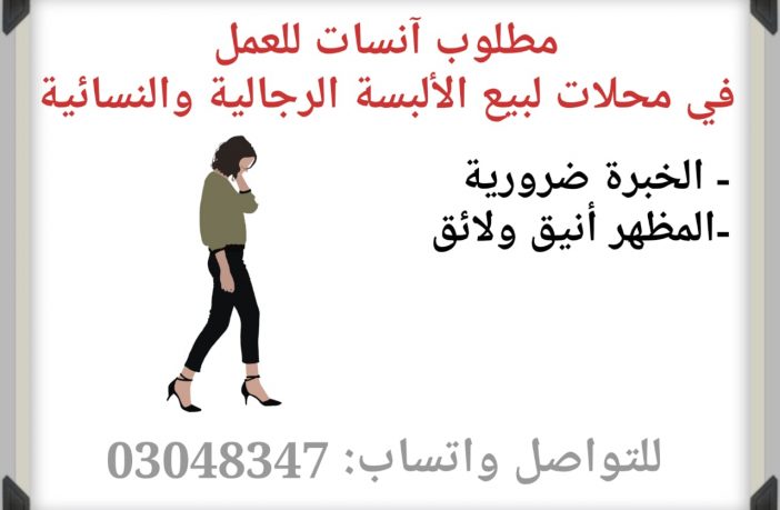 مطلوب آنسات للعمل في محلات لبيع الألبسة الرجالية والنسائية في صور