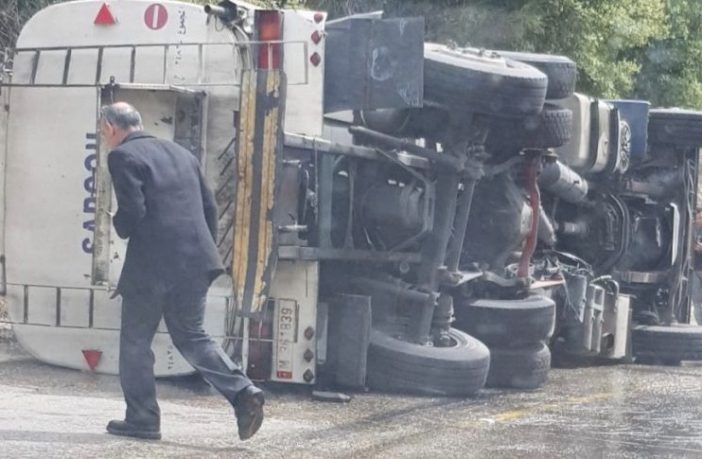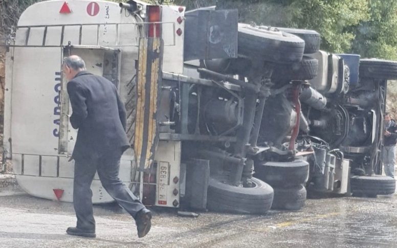ادى حادث سيرعلى طريق معاصر بيت الدين- دير القمر الى قطع الطريق الرئيسي لفترة، بعد انقلاب صهريج مازوت على الطريق بالقرب من قصر موسى، مسببا في الوقت نفسه، خطر انزلاق للسيارات العابرة، بسبب كمية المازوت التي تدفقت على الطريق.
