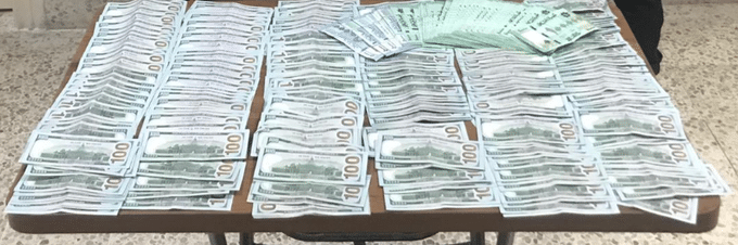 بالتاريخ ذاته، داهمت دوريات الشعبة مكان إقامتَيهما وأوقفتهما وضبطت بحوزتهما مبلغ /3120/ دولاراً أميركياً، كذلك عثرت على مبلغ /21,461/ دولاراً في الشقة في البوار.