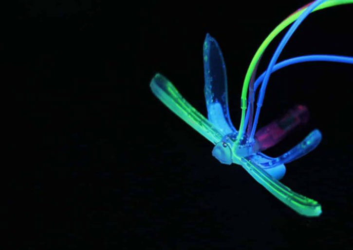 ويسمى اليعسوب الآلي DraBot، وهو خالٍ تمامًا من الإلكترونيات ويتفاعل مع الظروف البيئية، مثل: درجة الحموضة أو درجة الحرارة أو وجود الزيت.