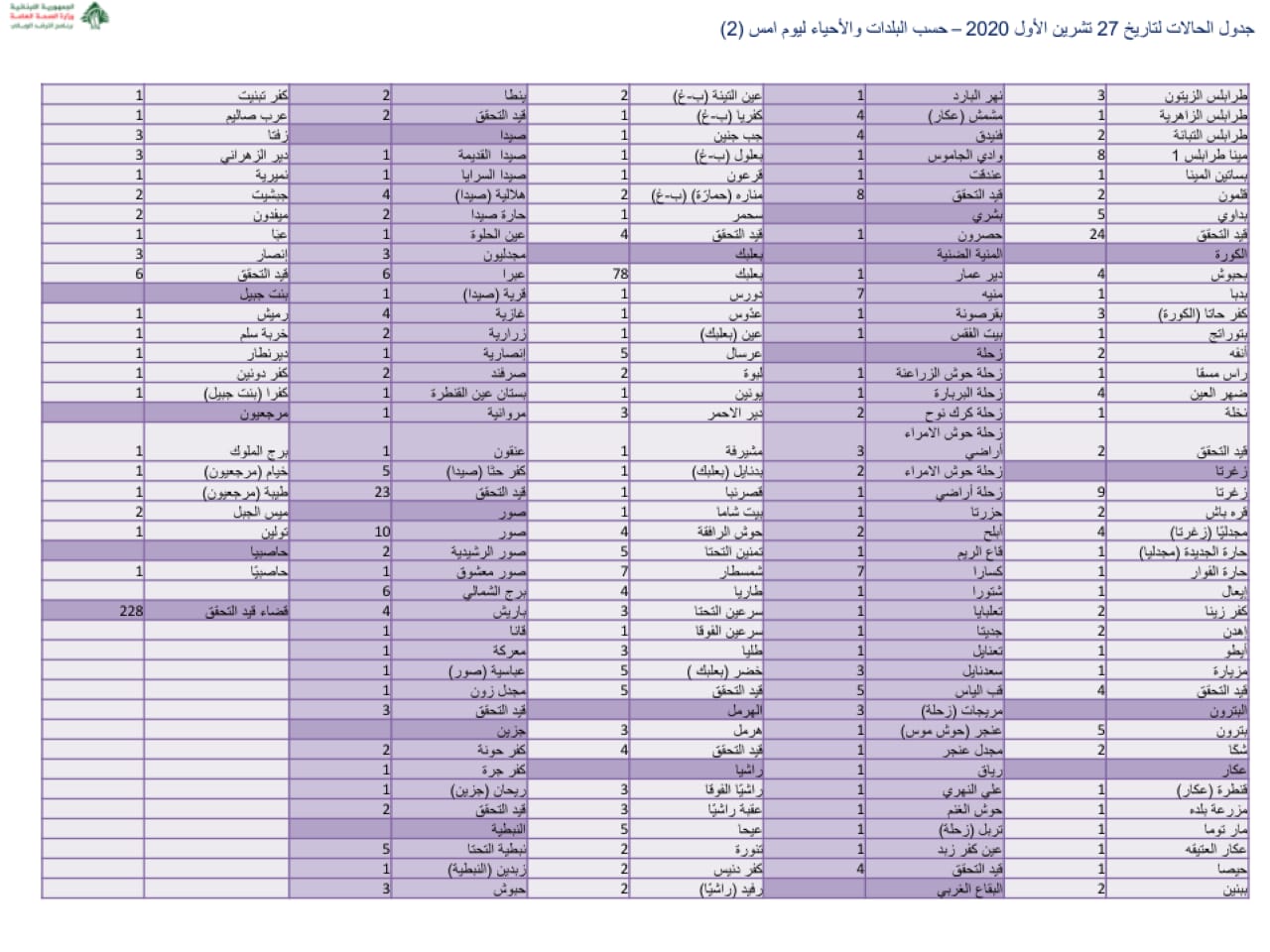 محليات وزارة الصحة اللبنانية : تسجيل 1809 إصابات جديدة و 11 حالة وفاة بفيروس كورونا خلال 24 ساعة By F.S أكتوبر 27, 2020 لا توجد تعليقات اعلنت وزارة الصحة اللبنانية : تسجيل 1809 إصابات جديدة و 11 حالة وفاة بفيروس كورونا خلال 24 ساعة featured