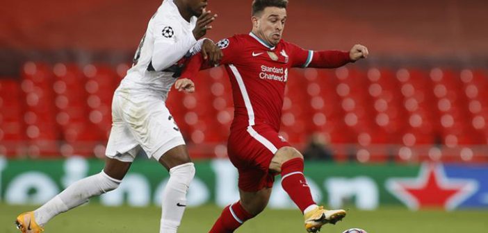 سجل هدفي ليفربول، دييجو جوتا ومحمد صلاح في الدقيقتين 55 و(90+3).