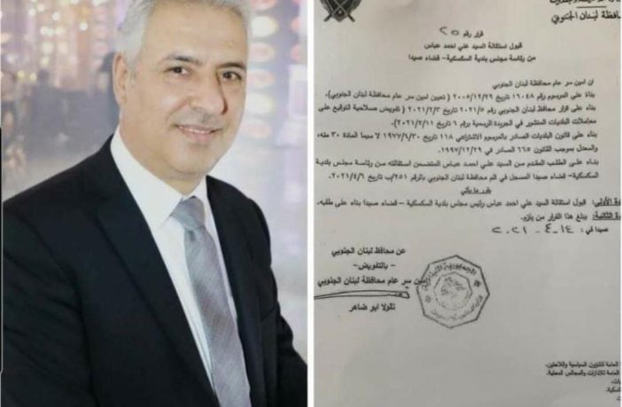 محليات استقالة رئيس بلدية السكسكية الحاج علي عباس ابو حيدر By F.S أبريل 18, 2021 لا توجد تعليقات السكسكية