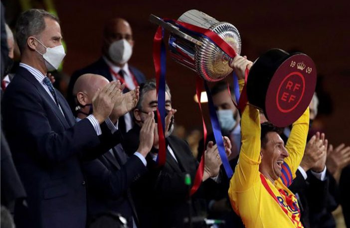 وفاز برشلونة على أتلتيك بلباو بنتيجة (4-0) ليتوج بكأس ملك إسبانيا للمرة 31 في تاريخه، وأحرز ميسي هدفين.