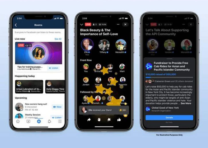 والجدير بالذكر أن فيسبوك تطلق منافسًا لتطبيق الصوت الاجتماعي كلوب هاوس من خلال ميزة تسمى Live Audio Rooms، التي تتوفر هذا الصيف.