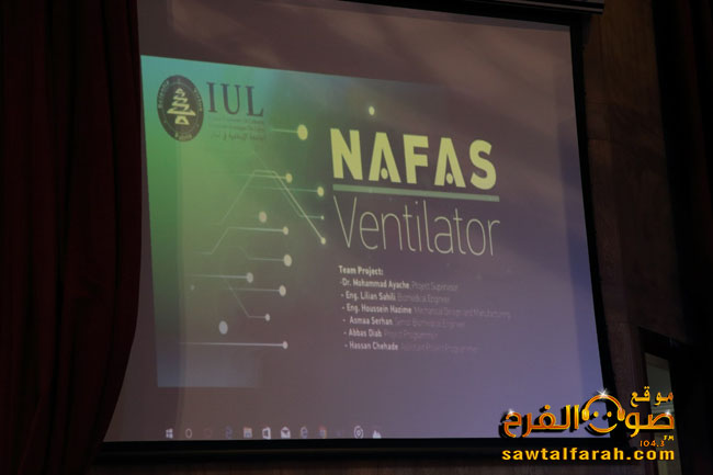 حققت الجامعة الإسلامية في لبنان جائزة التميّز من الإتحاد الدولي لجمعيات المخترعين(International Federation of Inventor’s Assotiations) من خلال مشاركتها في معرض بيروت الدولي للابتكار BIIS Beirut International Innovation Show 2021 الذي نظمته الهيئة الوطنية للعلوم والبحوث “إفتراضياً” بالتعاون مع الإتحاد الدولي لجمعيات المخترعين IFIA برعاية وزير الصناعة في حكومة تصريف الأعمال معالي الدكتور عماد حب الله في الفترة الممتدّة من 8-10 نيسان 2021 وقد قدّمت الجامعة مشروع جهاز التنفس الإصطناعي “NAFAS Ventilator” والذي اختارته ودعمته رئيسة الجامعة الأستاذة الدكتورة دينا المولى ونفّذه فريق العمل بإشراف الأستاذ الدكتور محمد عياش عميد كلية الهندسة في الجامعة والمهندسون ليليان الساحلي وحسين هزيمة وأسماء سرحان مع المبرمج عباس دياب ومساعد المبرمج الحسن شحادة.