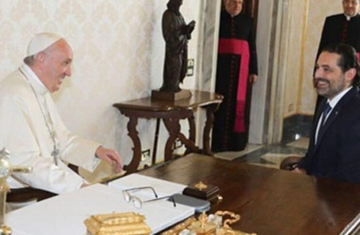 أعلن المكتب الإعلامي للرئيس سعد الحريري في بيان، ان “قداسة البابا فرنسيس استقبل صباح اليوم في القصر الرسولي بالفاتيكان، رئيس الحكومة المكلف سعد الحريري، في حضور الوزير السابق غطاس خوري والمستشار باسم الشاب وعقد معه اجتماعا تم خلاله التطرق الى العلاقات التاريخية بين الكرسي الرسولي ولبنان والدور الذي يمكن ان يقوم به الفاتيكان لمساعدة لبنان على مواجهة الازمات التي يمر بها”.