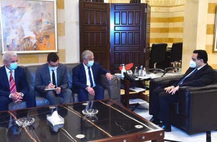استقبل رئيس حكومة تصريف الأعمال الدكتور حسان دياب في السراي الحكومي وفدًا روسيًا ديبلوماسيًا وعسكريًا برئاسة المبعوث الخاص للرئيس فلاديمير بوتين إلى سوريا ألكسندر لافزنتيف ومشاركة كل من رئيس الإدارة المركزية في وزارة الدفاع ميخائيل ميزنتسيف، مبعوث وزير الخارجية لسوريا ألكسندر كينشاك، السفير الروسي في لبنان ألكسندر روداكوف، ووفد من وزارة الدفاع ضم الفريق ستانيسلاف غدزيماغوميدوف، الجنرال يغوروف، والجنرال ألكسندر زورين، بحضور الوزير رمزي المشرفية ومستشاري الرئيس خضر طالب والسفير جبران صوفان.
