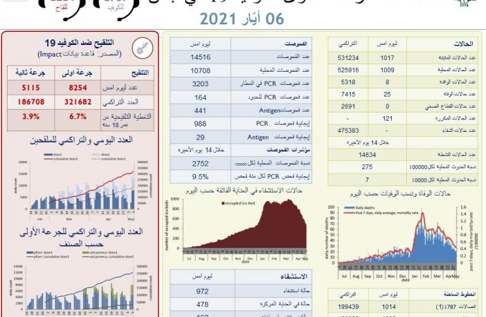 محليات وزارة الصحة: تسجيل 25 وفاة و1017 إصابة جديدة بكورونا By F.S مايو 6, 2021 لا توجد تعليقات featured