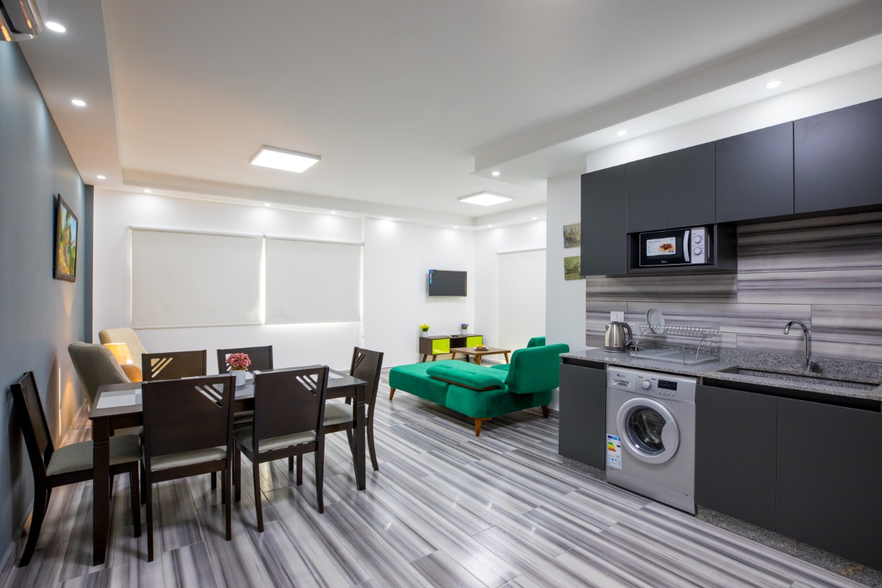 Elevators, central Ac’s , internet, 24-hour electricity, car parking, reception and security staff, housekeeping services