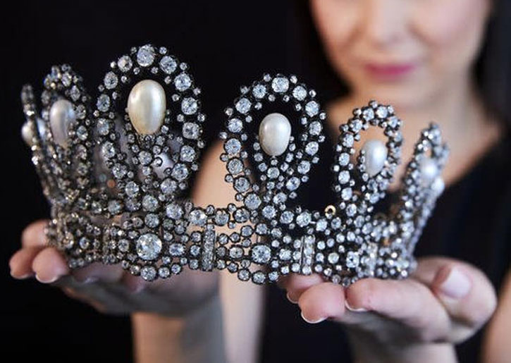 بيع تاج من الألماس واللؤلؤ تناقلته الأسرة الإيطالية المالكة على مر الأجيال مقابل 1.5 مليون فرنك سويسري (1.66 مليون دولار) في سويسرا.
